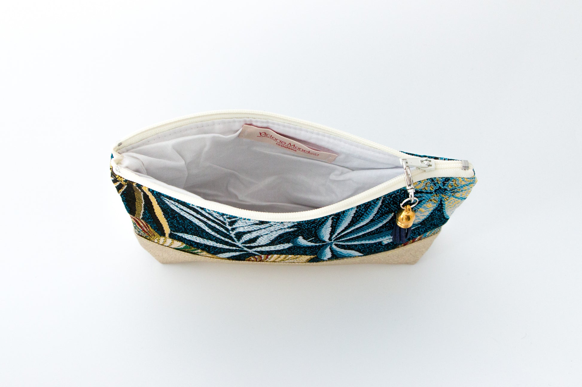 Découvrez notre petite pochette à main en coton et simili cuir, fait à la main avec soin.