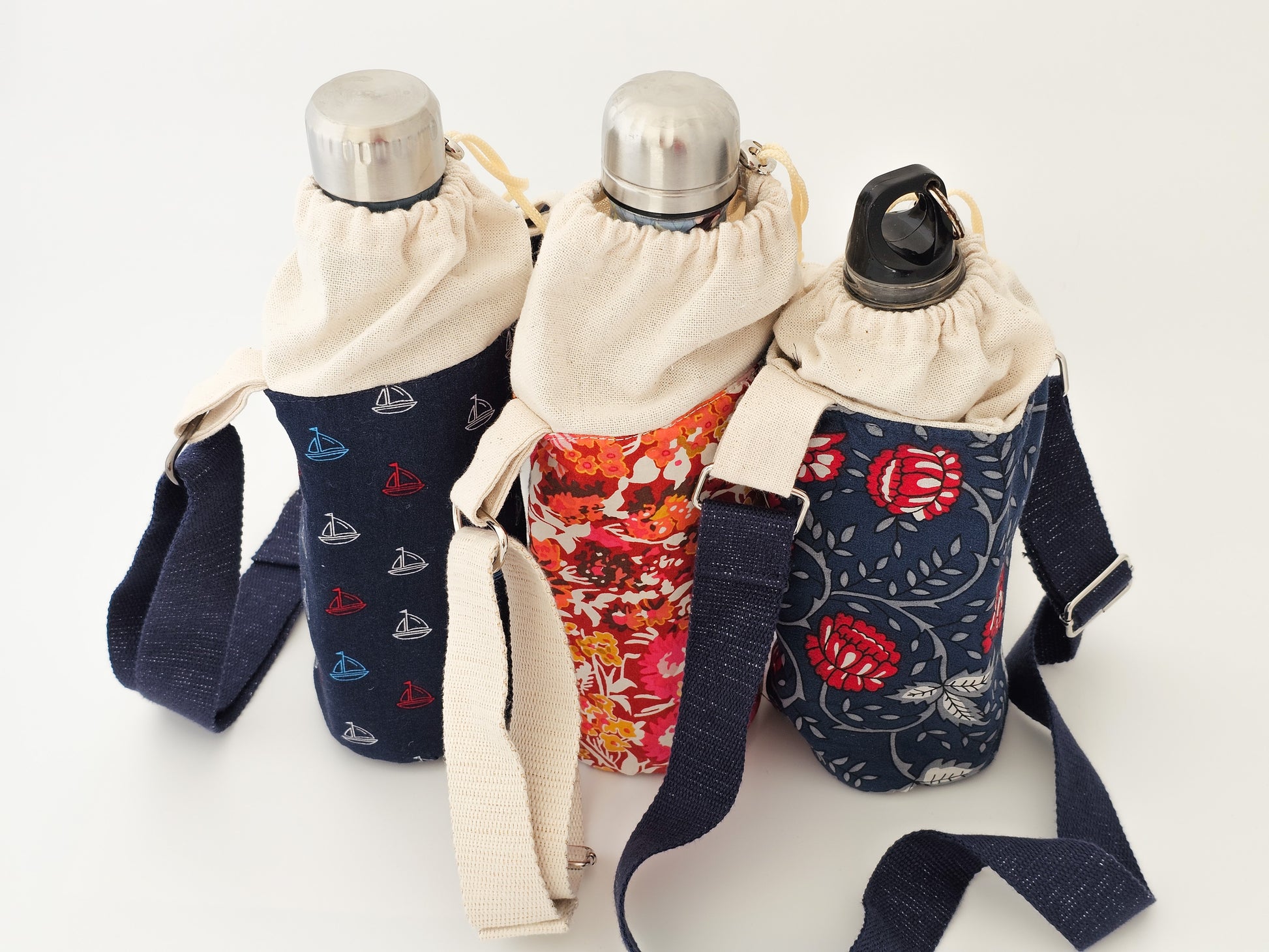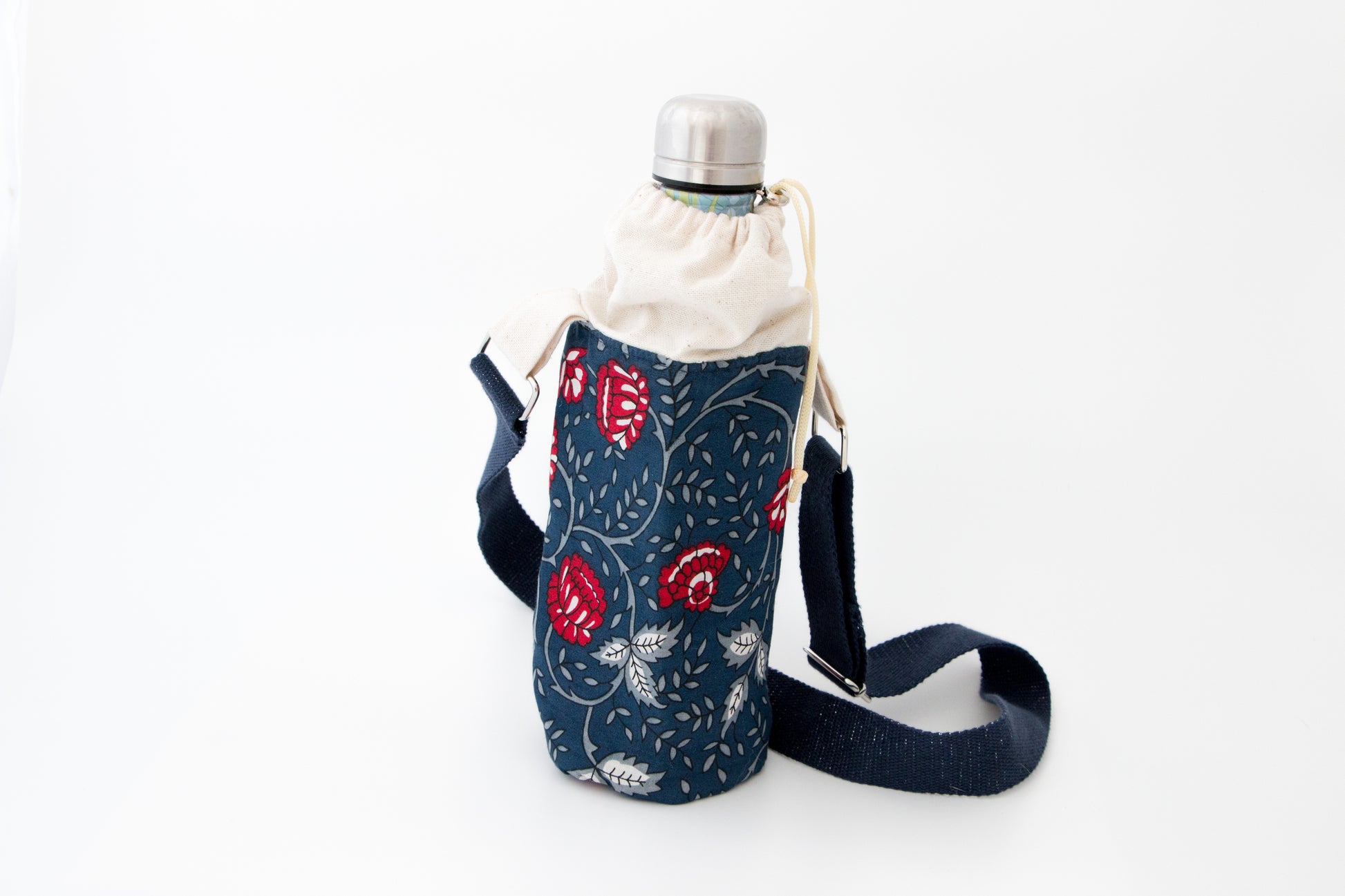 Ce porte gourde pratique est parfait pour transporter votre gourde en toute commodité. Fabriqué avec des tissus de qualité, tels que le coton, la toile et la popeline de coton, il assure également une isolation thermique grâce à la toile de jute pour garder votre boisson fraîche plus longtemps.