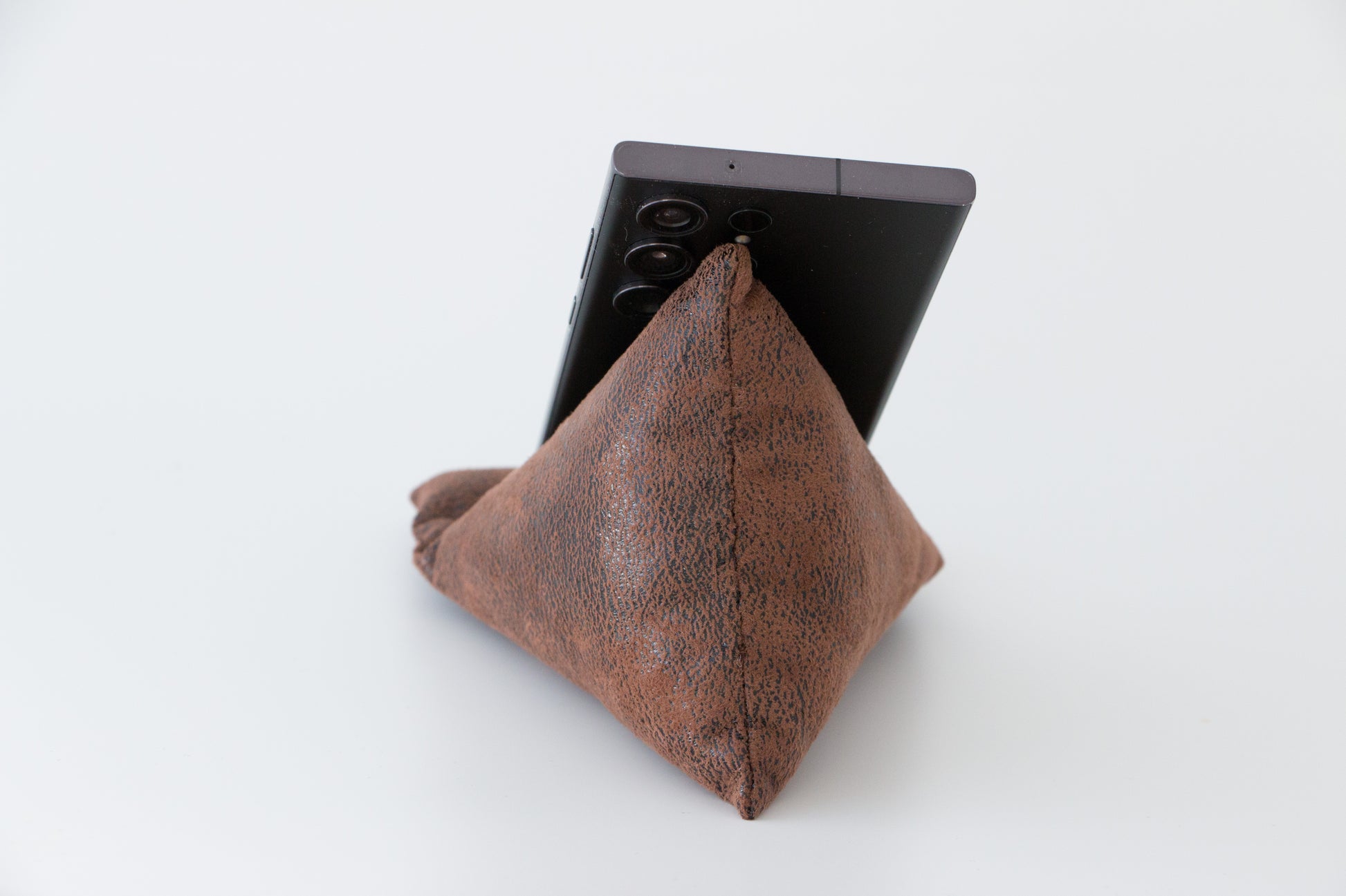 Le support à téléphone en tissu similicuir offre un moyen pratique de passer des appels vidéos tout en gardant les mains libres.