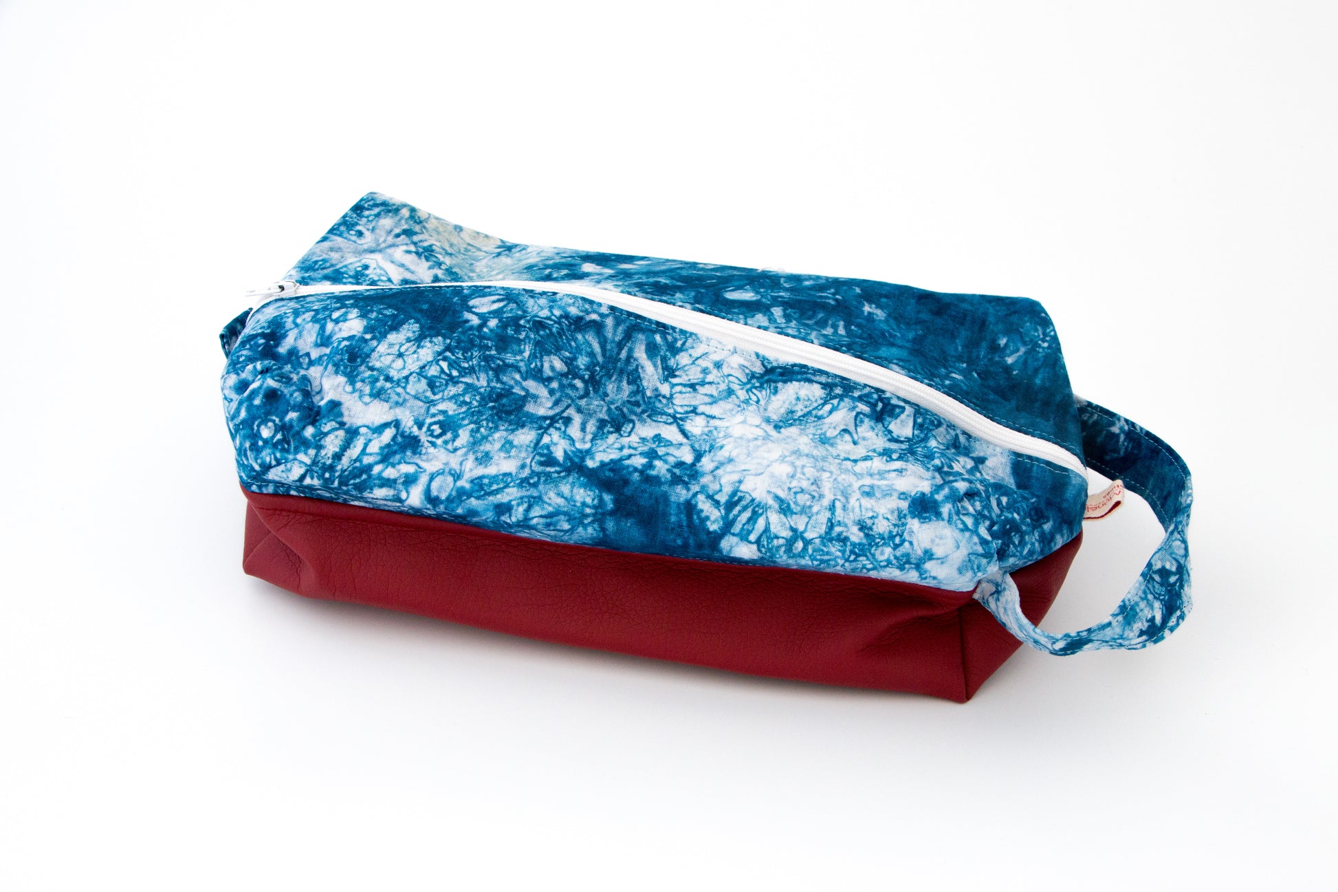 Cette trousse de toilette Homme en similicuir et tissu Batik est idéale pour ranger tous vos produits de toilette grâce à son intérieur en coton enduit.